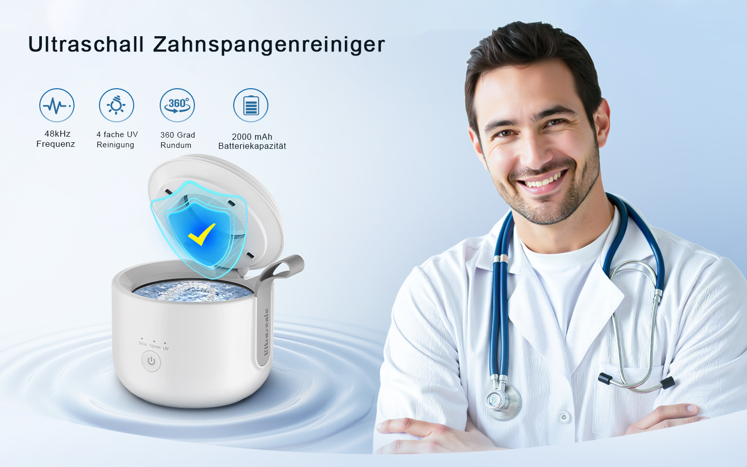 Erleben Sie 48000 Hz Ultraschallkraft für eine 360° Tiefenreinigung, die Gegenstände makellos reinigt und sanft schont.